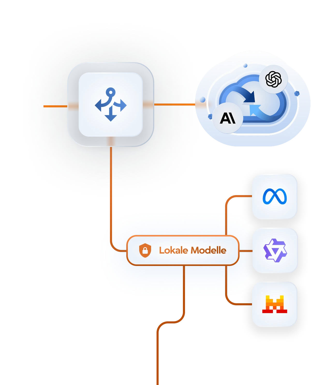Der BasePeak Model Router prüft jede Eingabe auf Komplexität und Datenschutzwürdigkeit und weist automatisch das passende Modell zu — lokal für sensible Inhalte, Cloud für rechenintensive Anfragen. So bleiben Daten geschützt und Antworten kommen immer mit der bestmöglichen Performance.